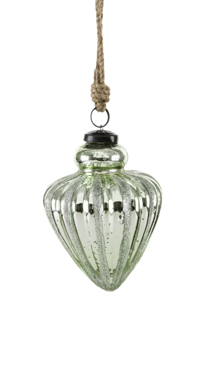 Dieser Deko Anhänger besteht aus Glas und misst 10 cm in Tiefe, Breite und Höhe. Die Hauptfarbe ist laut Produktdatenblatt Grau, auf dem Bild erscheint das Glas jedoch in einem leicht grünlichen, transparenten Ton mit einer glänzenden Oberfläche. Das Design zeigt eine gerillte, bauchige Form mit einer markanten Struktur und einer antik wirkenden Oberfläche. Die Aufhängung erfolgt über eine grob geknüpfte Kordel aus Naturfaser, die für einen sicheren Halt sorgt. Die Oberfläche des Glases ist teilweise verspiegelt und weist feine, dekorative Einschlüsse auf, die dem Anhänger eine besondere Optik verleihen.