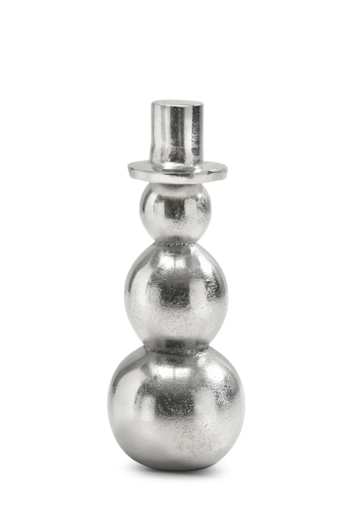 Die Dekofigur aus der Serie BLACK FORREST präsentiert sich in Form eines stilisierten Schneemanns und ist aus silberfarbenem Aluminium gefertigt. Die Oberfläche zeigt eine dezente Struktur, die dem Metall eine leicht glänzende und zugleich matte Optik verleiht. Mit einer Höhe von 19 cm sowie einer Breite und Tiefe von jeweils 7 cm eignet sich die Figur besonders für den Einsatz im Innenbereich, etwa im Wohnzimmer. Das Design besteht aus drei übereinander angeordneten Kugelsegmenten und wird durch einen zylindrischen Hut abgeschlossen, der ebenfalls aus Aluminium gefertigt ist. Die Materialwahl sorgt für Stabilität und verleiht dem Objekt ein modernes Erscheinungsbild. Die Figur bietet eine dezente Dekorationsmöglichkeit, die sich in verschiedene Einrichtungsstile integrieren lässt.