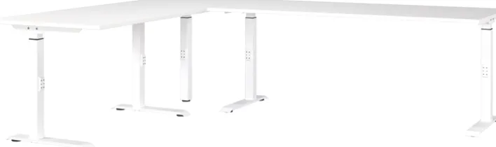 Der weiße Eckschreibtisch LORENZ bietet mit den Maßen 260 Zentimeter Breite und 200 Zentimeter Tiefe viel Platz zum Arbeiten. Das moderne Modell kann in einer Höhe von 68 bis zu 91 Zentimeter verstellt werden. Insgesamt wiegt der standsichere Ecktisch 48,52 Kilogramm.