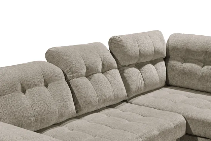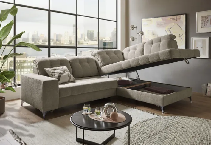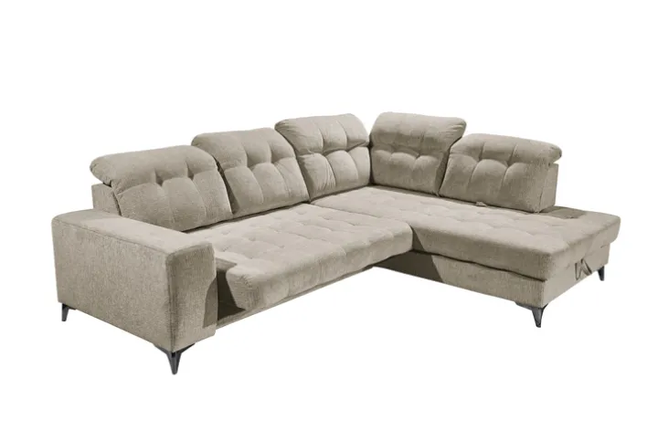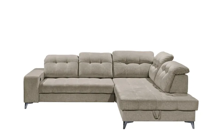 Das Sofa verfügt über eine motorische Verstellung, eine Kopfteilverstellung und eine Sitztiefenverstellung, die individuellen Komfort ermöglichen. Die Nosagfederung im Polsteraufbau bietet optimalen Sitzkomfort. Ein integrierter Bettkasten bietet zusätzlichen Stauraum, was besonders praktisch für kleinere Wohnungen ist. Die rechte Ausführung des Sofas und die gepolsterten Armlehnen runden das Design ab und machen es zu einem vielseitigen Möbelstück für Ihr Zuhause.