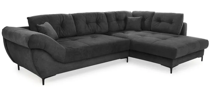 Das dunkelgraue Ecksofa SIENA ist inklusive Rückenkissen sowie zwei Zierkissen erhältlich. Bei diesem Produkt handelt es sich um eine rechtsgerichtete Ausführung.