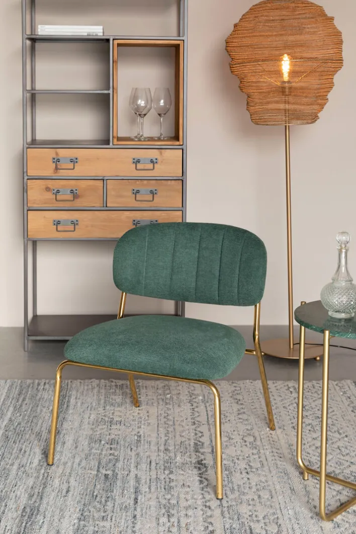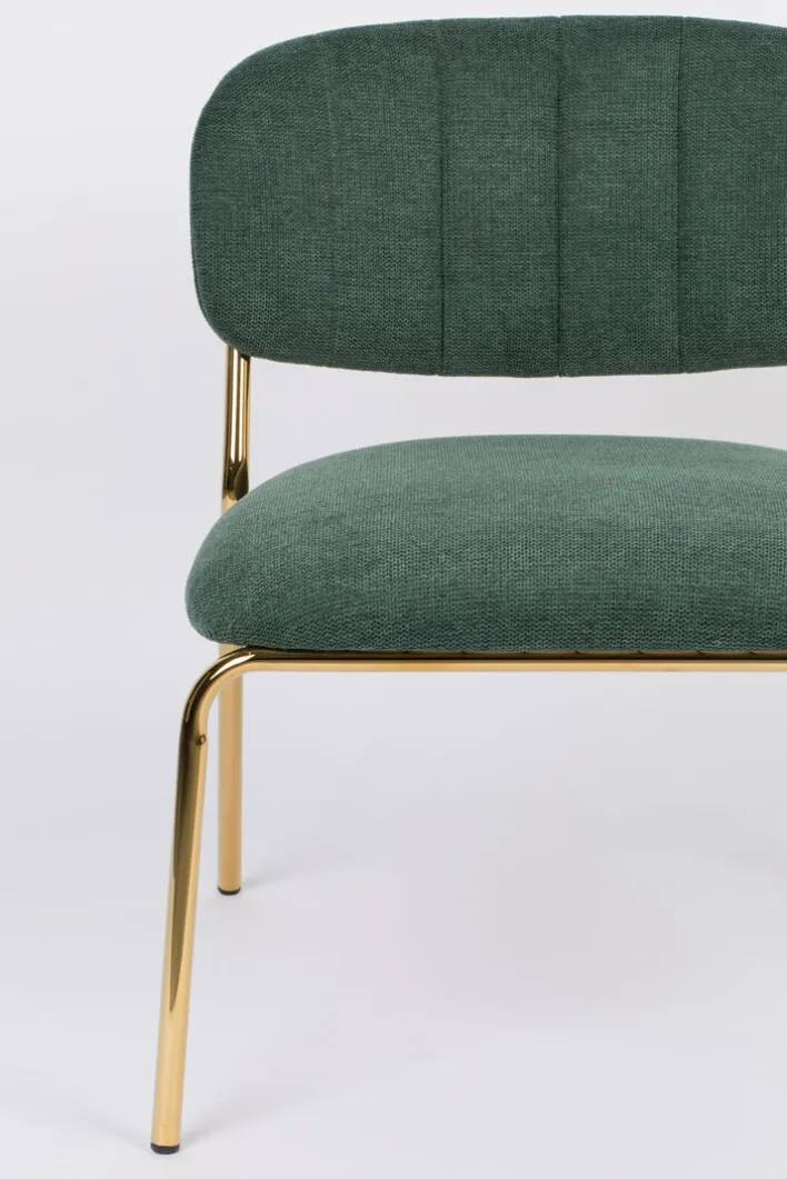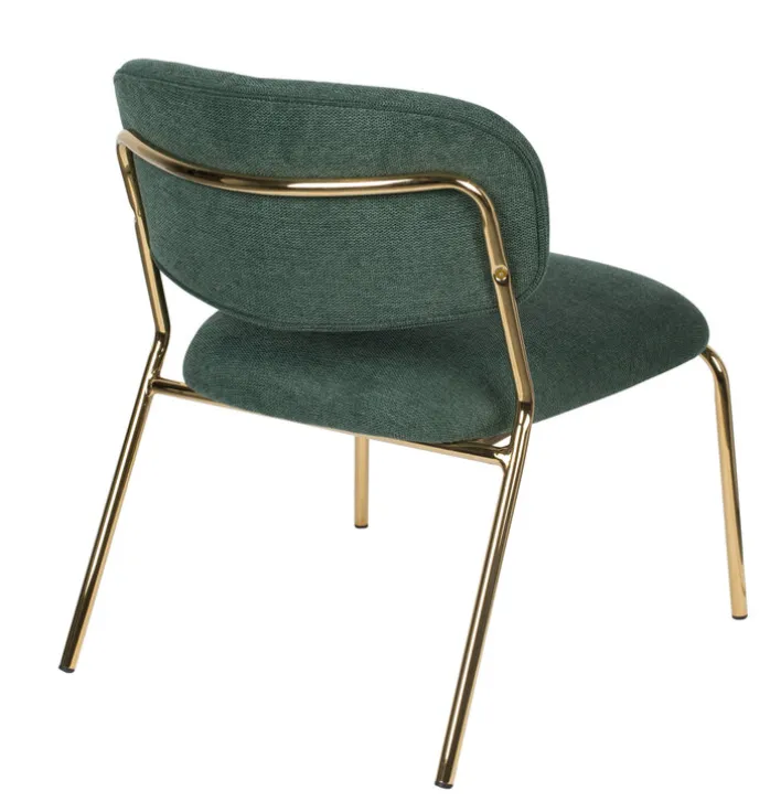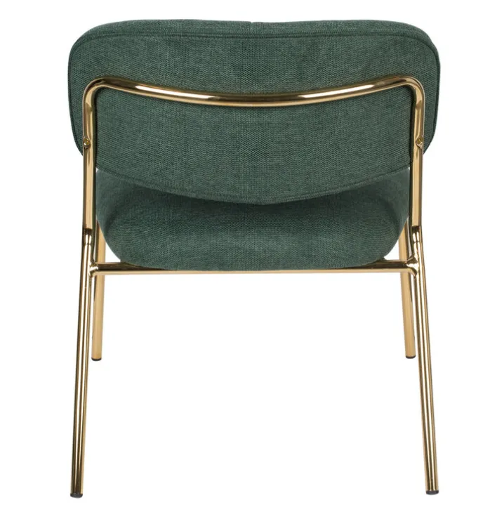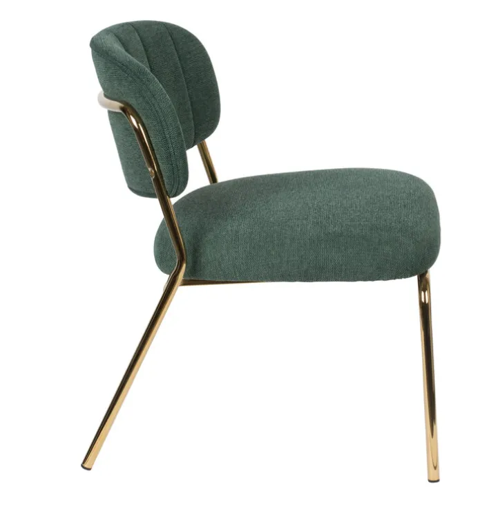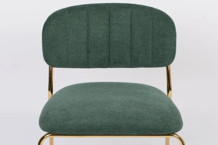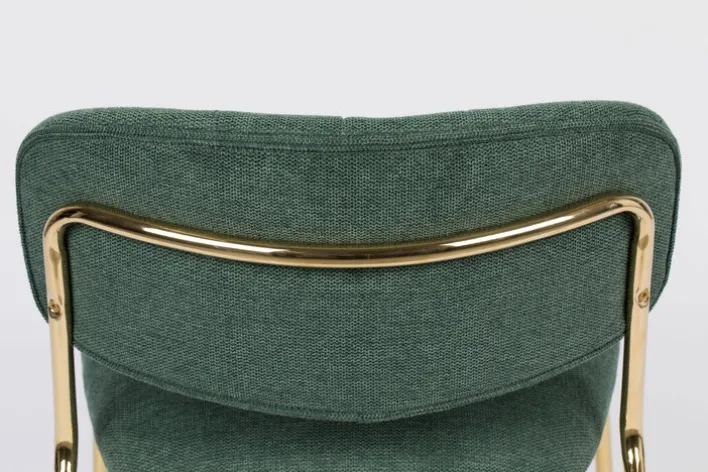 Der Esszimmerstuhl JOLIEN kombiniert sein traditionelles Vierfußgestell aus pulverbeschichtetem Stahl in goldfarben mit einem zweigeteilten Sitz mit dunkelgrünen Synthetikstoff aus 95% Polyester und 5% Nylon. Dank PUR-Schaum Polsterung sorgen Sitz und Rückenlehnen für einen hohen Sitzkomfort. Zudem schmiegt sich die gebogene Rückenlehne förmlich an den Rücken an. Überzeugen kann der Esszimmerstuhl aber nicht nur mit seinem hohen Komfort, auch die Optik weiß zu begeistern. Das stylische Design wird von Abnähern an der Rückenlehne unterstrichen und der Esszimmerstuhl harmoniert perfekt mit modernen Esszimmermöbeln.“