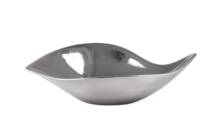 Die silberfarbige Dekoschale SIBELL in Blattform hat eine Länge von 22 cm und ist 14 cm breit. Sie ist aus hochwertiger Keramik gefertigt und in Handarbeit veredelt. Die Schale ist lebensmittelecht und für den Einsatz auf Tisch, Tafel und Buffet geeignet.