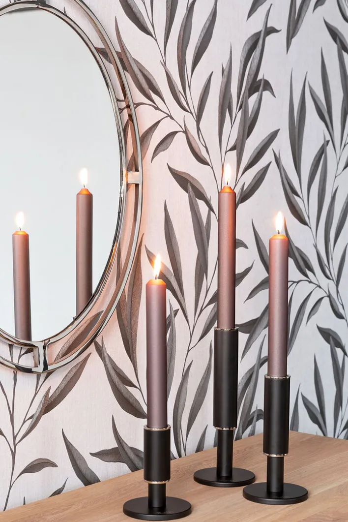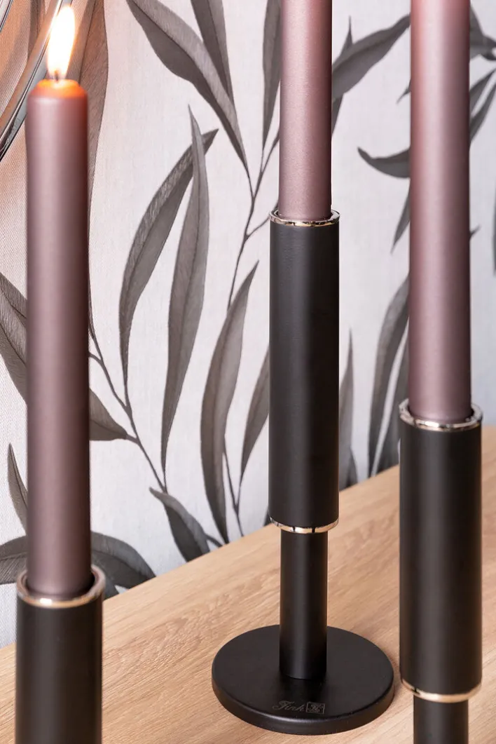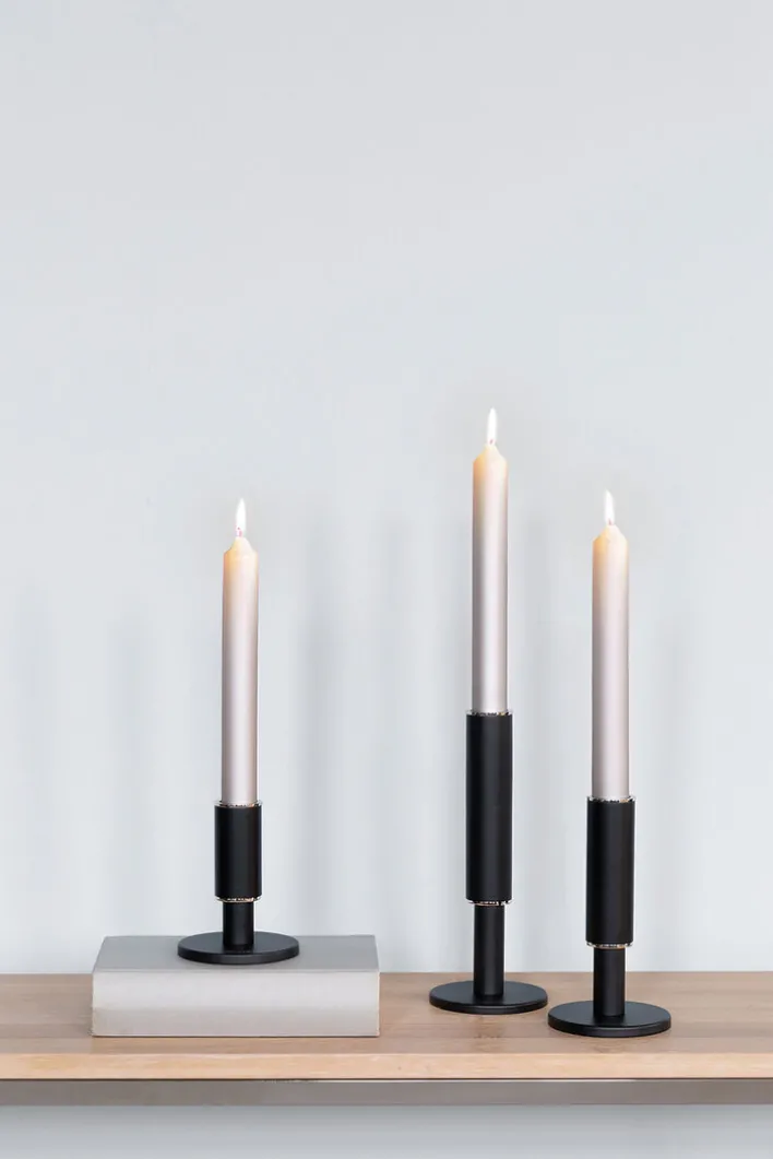 Der kleine schwarze Fink Kerzenleuchter RITMO besticht auf den ersten Blick mit einem eleganten Design. Dadurch fügt er sich problemlos in jeden Wohnraum ein und sorgt mit warmem Kerzenlicht für ein stimmungsvolles Ambiente.