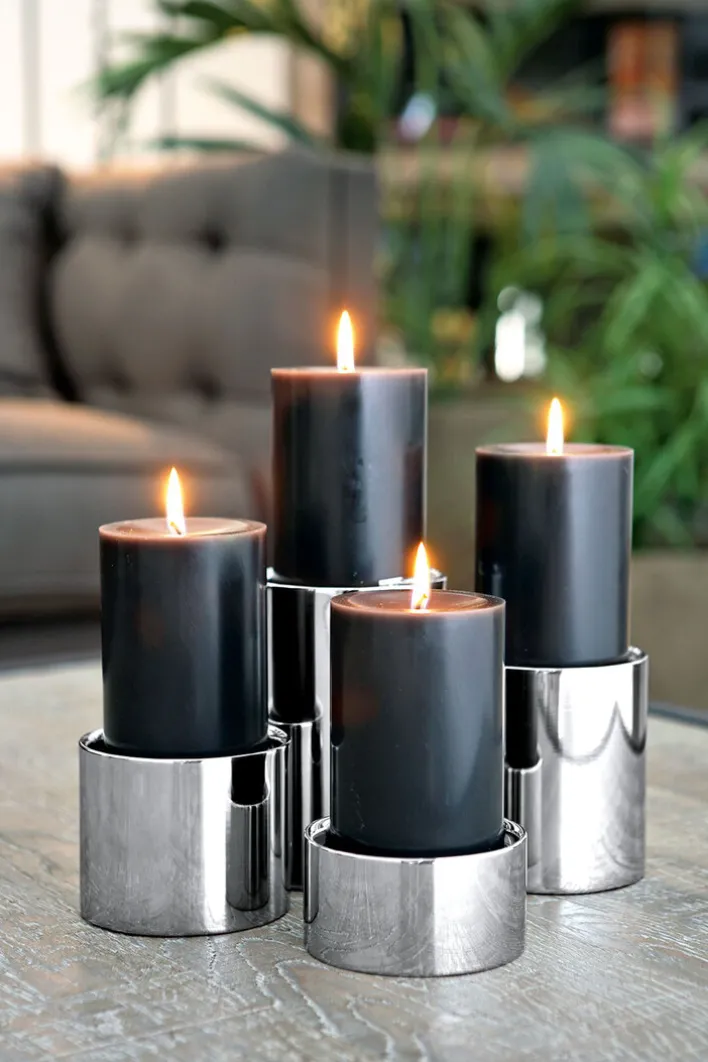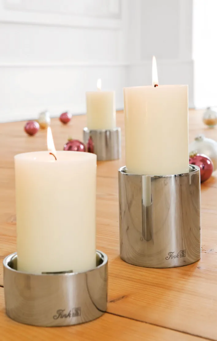 Der elegante Kerzenhalter SOBRIO von Fink hat eine Höhe von 11 cm und präsentiert sich schlicht in einem geradlinigen Design. Durch seine einzigartige Optik und seine zylindrische Form passt der Halter für Stumpenkerzen in moderne Raumkonzepte. Auf einem Wohnzimmertisch, einem Couchtisch oder einem Sideboard platziert, fällt der Kerzenhalter sofort ins Auge und sorgt mit einer Kerze bestückt für einzigartige Lichtakzente. Der Kerzenhalter ist einzeln oder auch in einem Ensemble ein echter Blickfang.