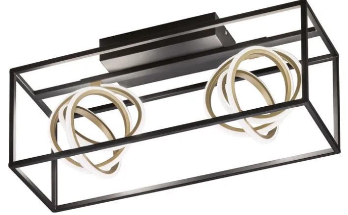 Ihre Höhe beträgt 25 cm. Die Lampe zeigt die Farben Schwarz und Gold. Mit 26 Watt Verbrauch ist die Leuchte sehr energiesparend. Die Helligkeit beträgt 3.000 Lumen, die Farbtemperatur wird über einen Dimmer zwischen 2.700 und 6.500 Kelvin eingestellt. Die moderne Deckenlampe besitzt mit ihrem schwarzen, reduzierten Gehäuse und den goldfarbigen Leuchten einen besonderen Schick und passt in viele Interieurs.