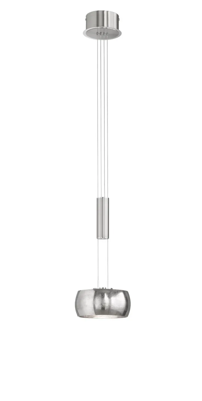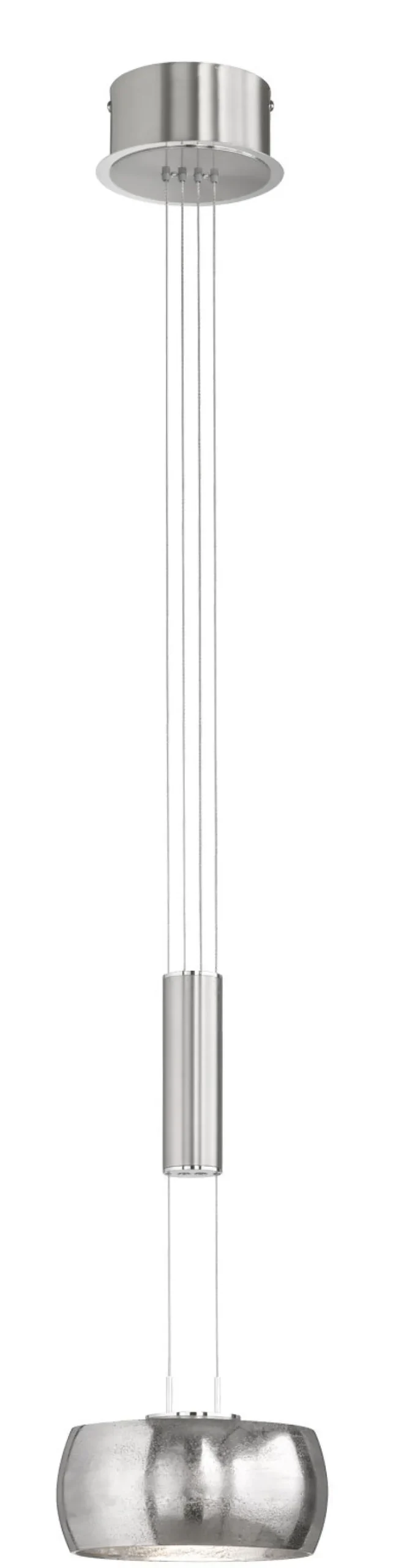 Die FISCHER & HONSEL LED Pendelleuchte COLETTE kombiniert einen schlichten Korpus mit einem nickelfarbigen Metallschirm in Antik-Optik mit 20 cm Durchmesser. Sie ist von 100 bis 160 cm in der Höhe verstellbar und ist mit einer fest eingebauten LED ausgestattet. Die dimmbare 9 Watt LED bietet eine Lichtleistung von maximal 950 Lumen und hat warmweiße 2700 Kelvin. Zudem überzeugt die LED mit einer langen Lebensdauer von bis zu 30.000 Stunden. Zum Dimmen der Pendellampe ist ein geeigneter Wanddimmer notwendig.