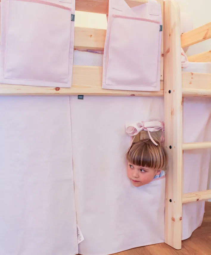 Der Kinderbettvorhang aus der Serie Dawn von FLEXA ist für den Einsatz im Kinderzimmer konzipiert. Mit einer Breite von 110 cm und einer Höhe von 77 cm eignet sich der Vorhang für halbhohe Betten und bietet eine spielerische Ergänzung für das Kinderbett. Das Produkt besteht aus rosafarbenem Textil, wobei als Hauptmaterial Baumwolle verwendet wird, was für eine angenehme Haptik und Strapazierfähigkeit sorgt.
