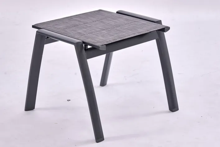 Der schöne Gartenhocker RON hat ein stabiles Untergestell aus leichtem Aluminium und ist pulverbeschichtet. Der Bezug der Sitzfläche ist aus dem Outdoorgewebe Textilene hergestellt. Das Textil ist wetterbeständig. Der rechteckige Gartenhocker ist bis zu 50 kg belastbar.