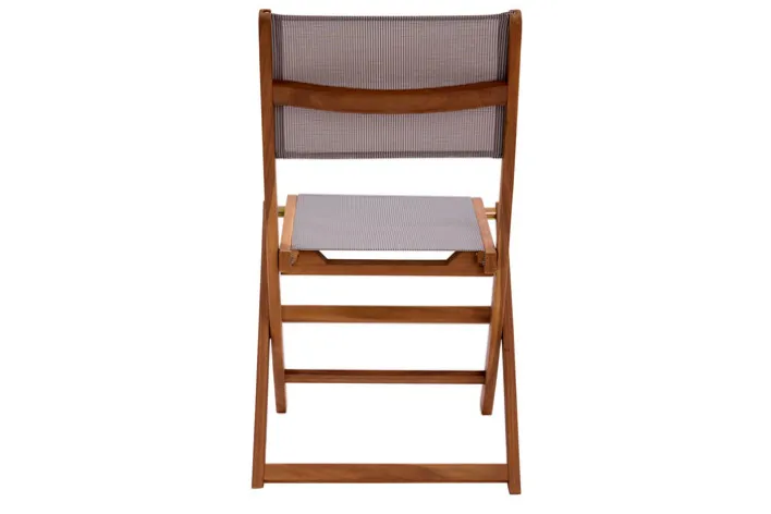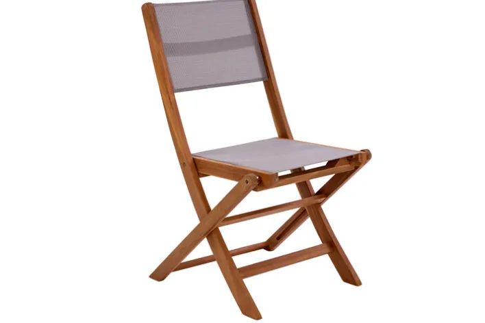 Der Garden FLAIR Gartenklappstuhl ROLAND hat eine Sitzhöhe von 45 cm. Er ist 58 cm breit und 90 cm hoch, aus naturbelassenem FSC Akazienholz mit einem grauen Textilene-Bezug.