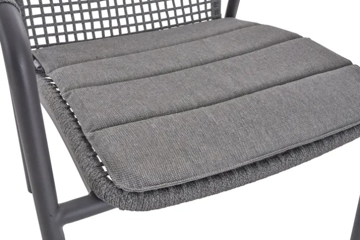 Der zweiteilige elegant-stylische REPTON ROPE Garten-Stapelstuhl von Garden FLAIR kommt in einem modernen und dennoch zeitlosen anthrazitfarbenen Metall-Gestell und einer hellgrauen Textilauflage. Das leichtgewichtige sowie stabile Modell überzeugt durch einen hohen Qualitätsstandard, komfortablen Armlehnen-Kordelung sowie ein luxuriös wirkendes Seilgeflecht.