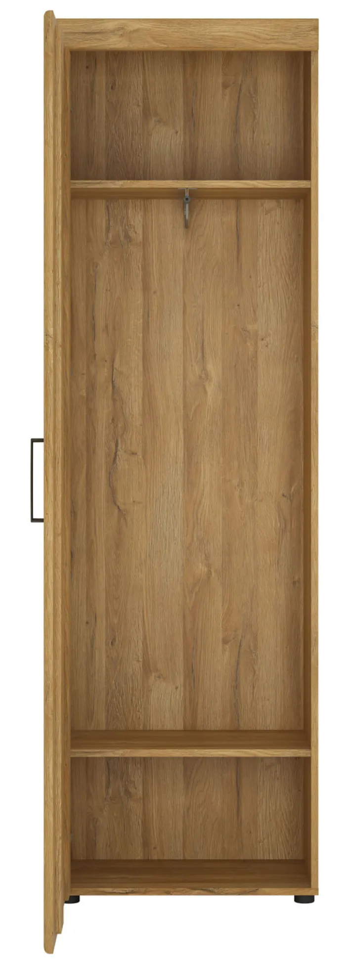 Dieser Garderobenschrank ist ein richtiges Ordnungswunder! De Schrank CORTINA in Holznachbildung Eiche braun ist 58 x 195 cm groß und hat eine Tiefe von 37,5 cm. Er ist mit einer Drehtür ausgestattet und sehr geräumig.