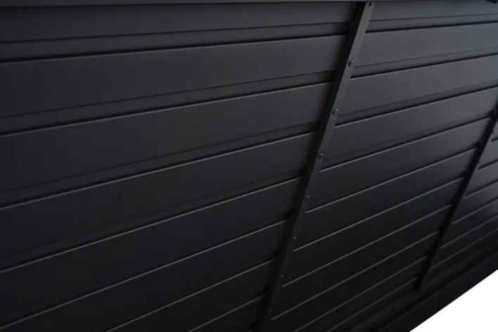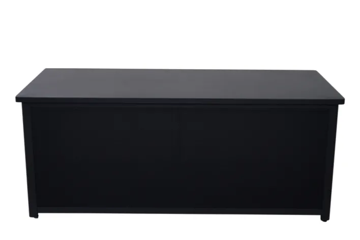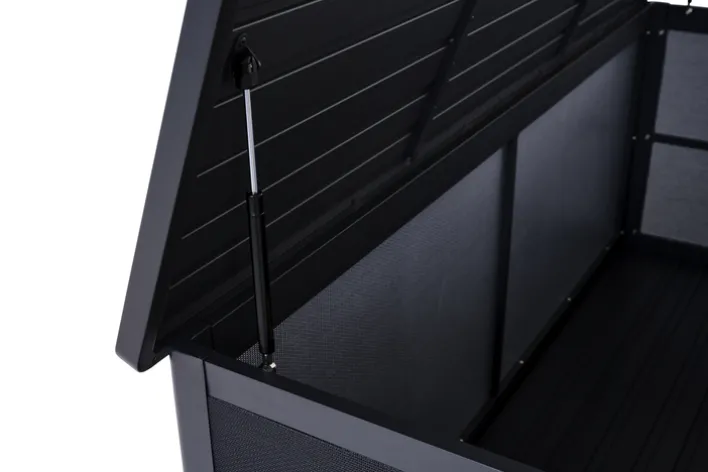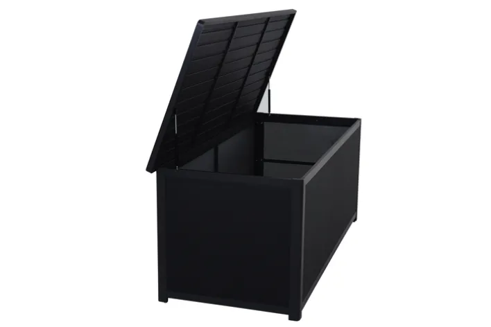Die Auflagenbox GRADINE M bietet eine praktische und stilvolle Lösung zur Aufbewahrung im Garten. Mit einer Breite von 135 cm, einer Höhe von 59 cm und einer Tiefe von 75 cm bietet sie ausreichend Stauraum für Kissen und andere Gartenutensilien. Die Box ist in einem eleganten Schwarz gehalten, das sich nahtlos in verschiedene Gartenstile einfügt. Das Design ist rechteckig und passt perfekt zu einem modernen, industriellen oder skandinavischen Stil. Gefertigt aus robustem Metall und Kunststoff, ist die Auflagenbox sowohl langlebig als auch wetterbeständig. Die pulverbeschichtete Oberfläche aus Aluminium sorgt für zusätzlichen Schutz und eine ansprechende Optik. Die Box ist klappbar, was die Handhabung erleichtert und bei Nichtgebrauch Platz spart. Ein weiteres praktisches Merkmal ist der Stauraum, der für Ordnung im Außenbereich sorgt.