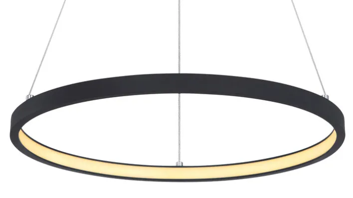Die schwarze Pendellampe RALPH von GLOBO LED hängt von der Decke in einer Länge von 120 Zentimetern in den Raum und ist daher ideal für die Beleuchtung von Tischen geeignet. Der maximale Durchmesser des runden, schmalen Schirms beträgt 38,5 Zentimeter.