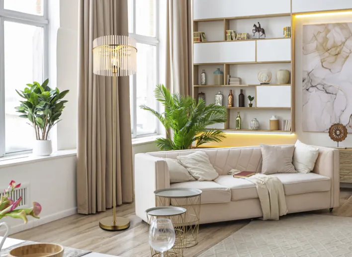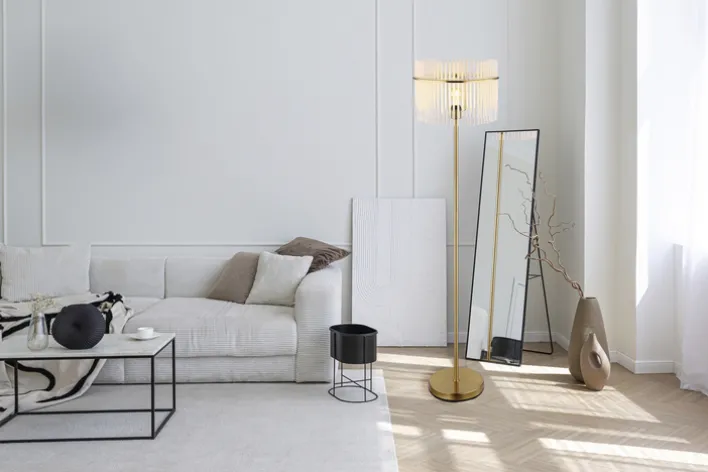 Die GLOBO Retrofit Stehlampe GORLEY besticht durch eine luxuriöse Kombination von elegantem Design und hoher Funktionalität.