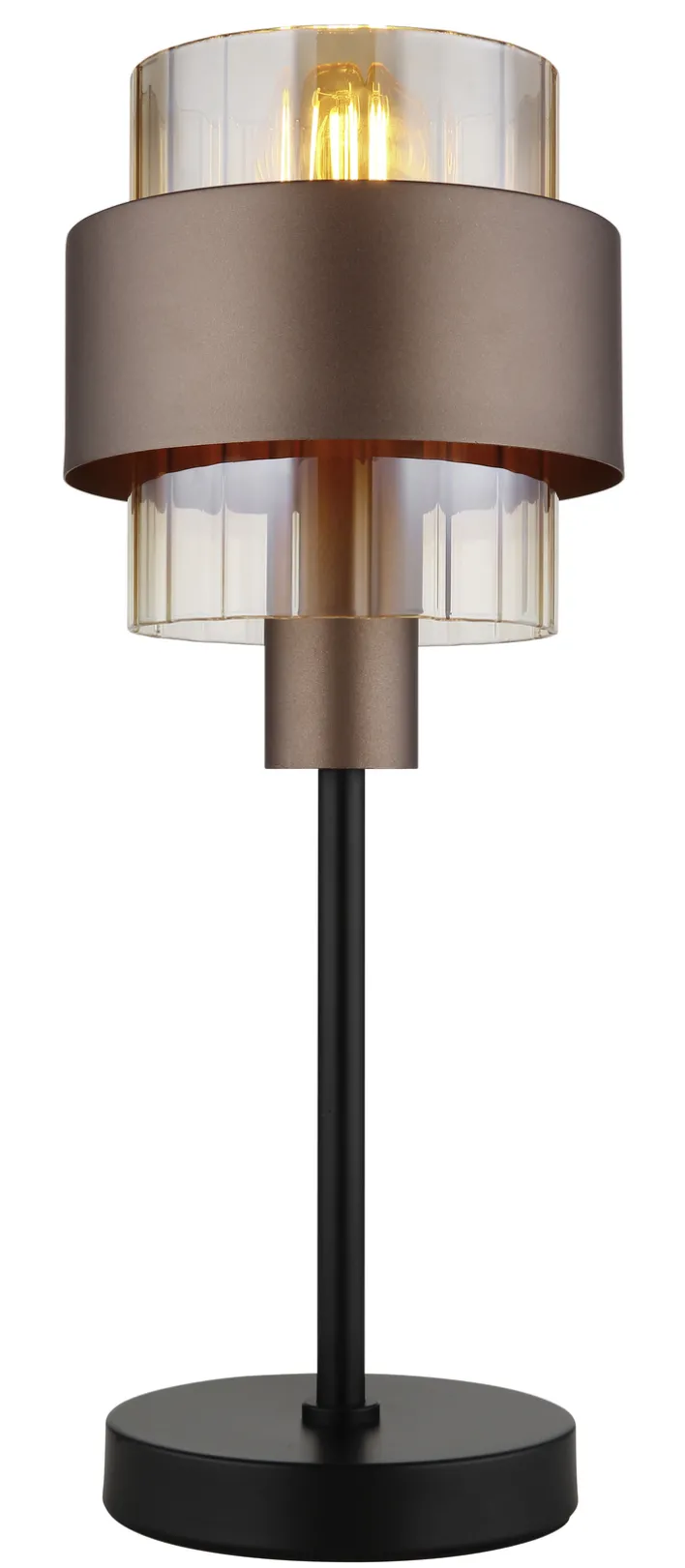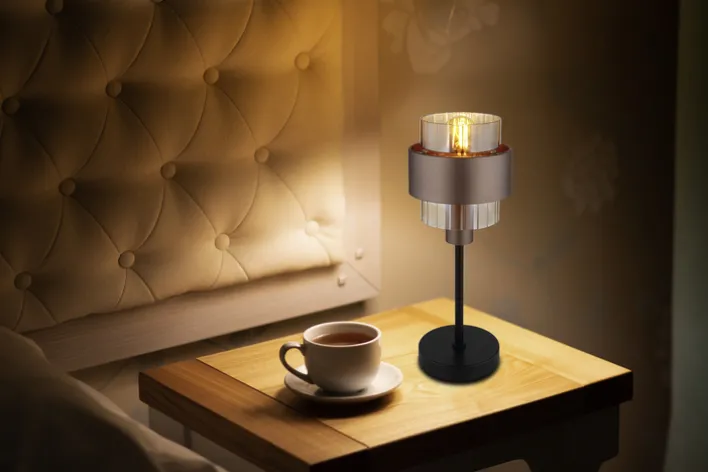 Die Tischlampe MILLEY von GLOBO vereint modernes Design mit funktionaler Beleuchtung. Mit einem Durchmesser von 18,5 cm und einer Höhe von 47 cm ist sie kompakt und dennoch ein Blickfang. Die Lampe besteht aus einer Kombination von Metall und Glas, was ihr eine elegante und zeitgemäße Ausstrahlung verleiht. Der bronzefarbene Schirm harmoniert perfekt mit den schwarzen und goldfarbenen Akzenten, die im Farbton Amber schimmern. Diese Farbkombination sorgt für ein warmes und einladendes Lichtambiente.