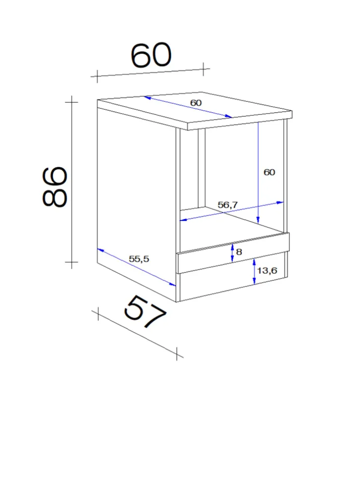 Der NEO HU60 ist die perfekte Ergänzung für Ihre Küche! Dieser hochwertige Schrank ist aus weißem Melamin gefertigt und wird mit einer Arbeitsplatte, einer festen Platte und einer Nische für den Einbauherd geliefert. Die Planungstiefe des Schranks beträgt 60 cm, so dass er sich leicht in jede Kücheneinrichtung einfügen lässt.