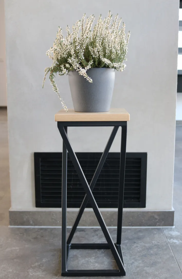 Dieser 21 x 50 x 21 cm große Blumenständer kombiniert helle Holztöne mit zeitlosem Schwarz. Das Ergebnis ist ein eleganter Look, der den Ständer zu einer idealen Lösung für die stilvolle Präsentation von Pflanzen macht.
