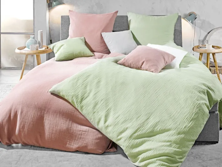 Die INSPIRATION HOME Musselin-Bettwäsche aus hochwertigem Baumwoll-Musselin ist Standard-100-geprüft und garantiert frei von Schadstoffen. Mit ihrem leichten Material fühlt sie sich nicht nur weich an, sie ist zudem saugfähig und atmungsaktiv. Ein weiterer Vorteil ist ihr klassischer Crinkle-Look der zu jedem Einrichtungsstil passt. Doch das ist nicht alles! Die Bettwäsche ist zudem sehr pflegeleicht und lässt sich bei 40 °C waschen, im Trockner trocknen und ist bügelfrei.