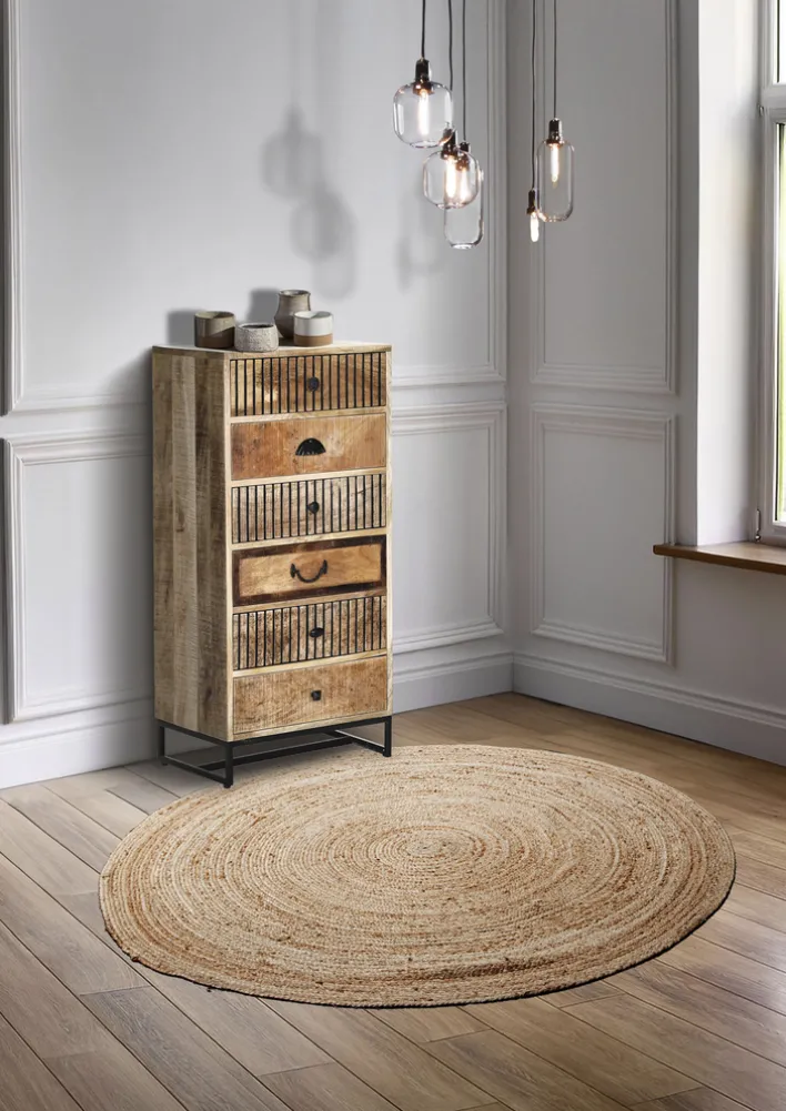 INTERhome: Der Name steht für stilvolles Wohndesign. Korpus und Schubladenfronten der schönen Kommode GENESIS sind aus massivem Mangoholz gefertigt. Das gebeizte und lackierte Naturmaterial macht mit seinen interessanten Strukturen jede Kommode zu einem Einzelstück. Durch das schwarz lackierte Gestell und die Griffe entsteht ein attraktiver Kontrast. In den sechs Schubladen lassen sich viele Dinge wohlgeordnet unterbringen. Das Schubladeninnere besteht aus mitteldichter Faserplatte, die Laufleisten aus Metall.