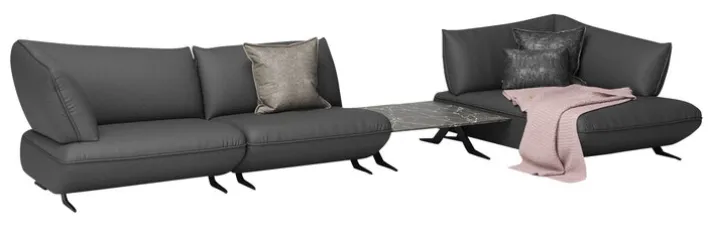 Das filigran geformte und dennoch äußerst stabile Gestell besteht beim JOOP! Ecksofa mit Tisch aus pulverbeschichtetem Metall. Zwischen den beiden Sitzbereichen der hochwertigen Rundecke bietet ein integrierter Tisch praktische Ablagefläche. Die Marmoroptik der Tischoberfläche bildet einen geschmackvollen Kontrast zum Sofabezug in dunklem Anthrazitgrau. Die Rückenlehne des Sofas erinnert mit ihrer Form an aufrecht fixierte Rückenkissen und ist auch entsprechend weich gepolstert. Insgesamt strahlt das JOOP! Ecksofa mit Tisch modernes Flair aus und lässt sich durchaus vielfältig mit unterschiedlichen Einrichtungsfarben kombinieren.
