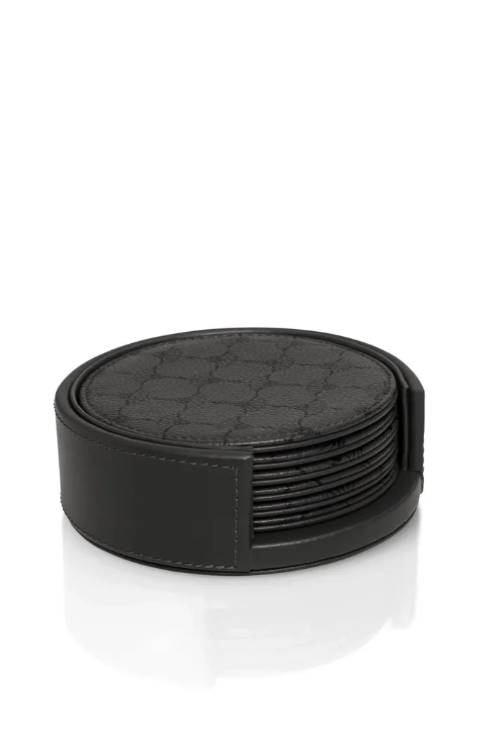 Das Design wirkt modern und zurückhaltend, wobei eine klar erkennbare Textiloberfläche aus Kunstleder die Optik prägt. Die Untersetzer sind in einem passenden Halter aus dem gleichen Material untergebracht, der für eine ordentliche Aufbewahrung sorgt. Das Material besteht aus einer Kombination von Glas und Textil. Geeignet sind die Untersetzer vor allem für Esszimmer- und Wohnzimmerbereiche.