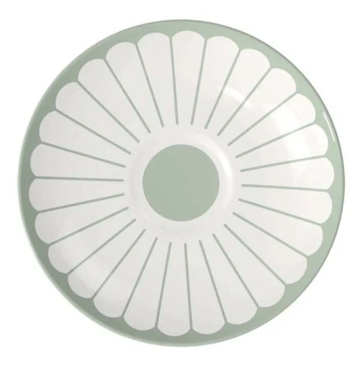 Das runde Design der Untertasse wird durch ein stilvolles Muster ergänzt, das an Blütenblätter erinnert und dem Produkt eine besondere Note verleiht. Die Hauptfarbe Grün sorgt für eine frische und moderne Ausstrahlung, die sich nahtlos in verschiedene Einrichtungsstile einfügt. Mit einem Gewicht von 0,175 kg ist die Untertasse leicht und dennoch stabil, was sie zu einem praktischen Begleiter im Alltag macht.