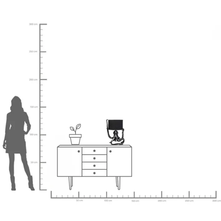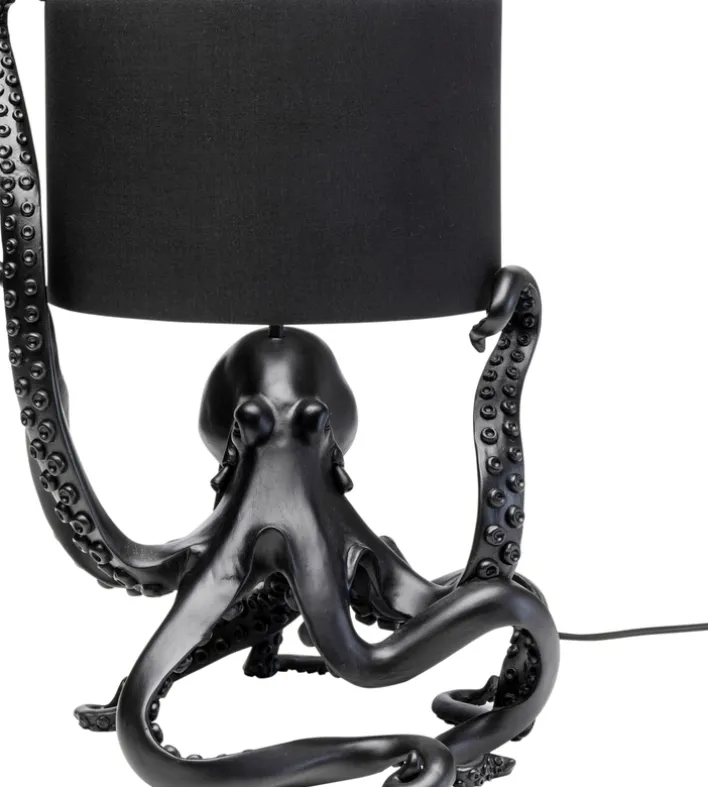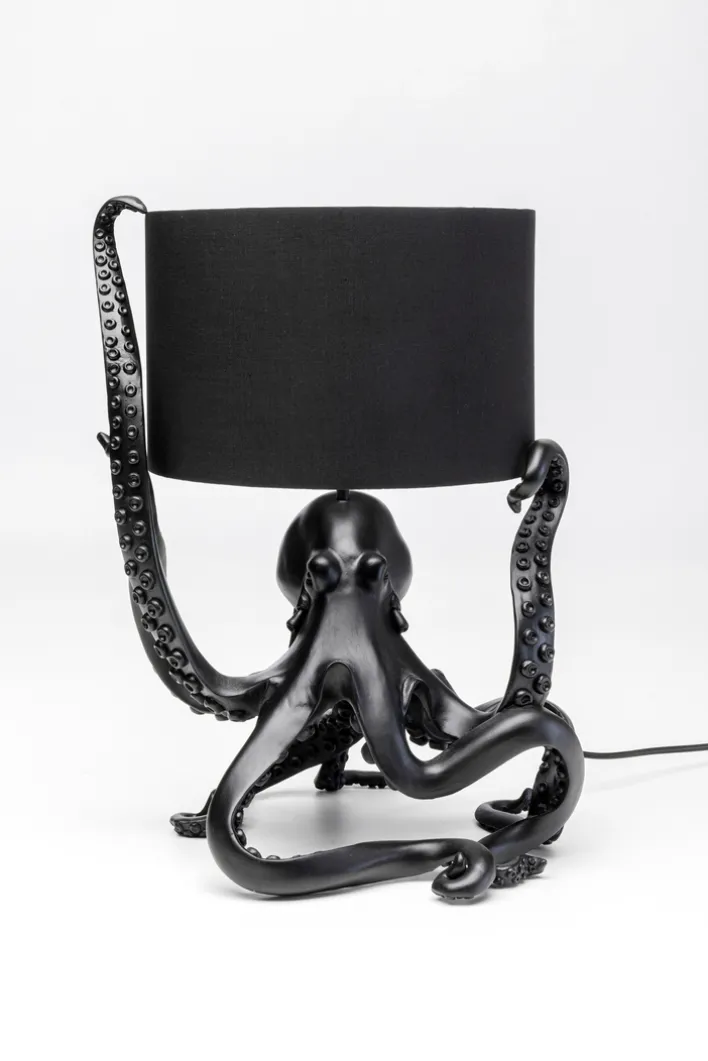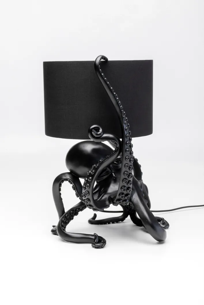 Diese Leuchte besticht durch ihre auffällige Form eines Oktopus, dessen Tentakel kunstvoll den Lampenschirm umschlingen. Gefertigt aus schwarzem Polyresin, verleiht sie jedem Raum einen Hauch von Glamour und zieht alle Blicke auf sich.