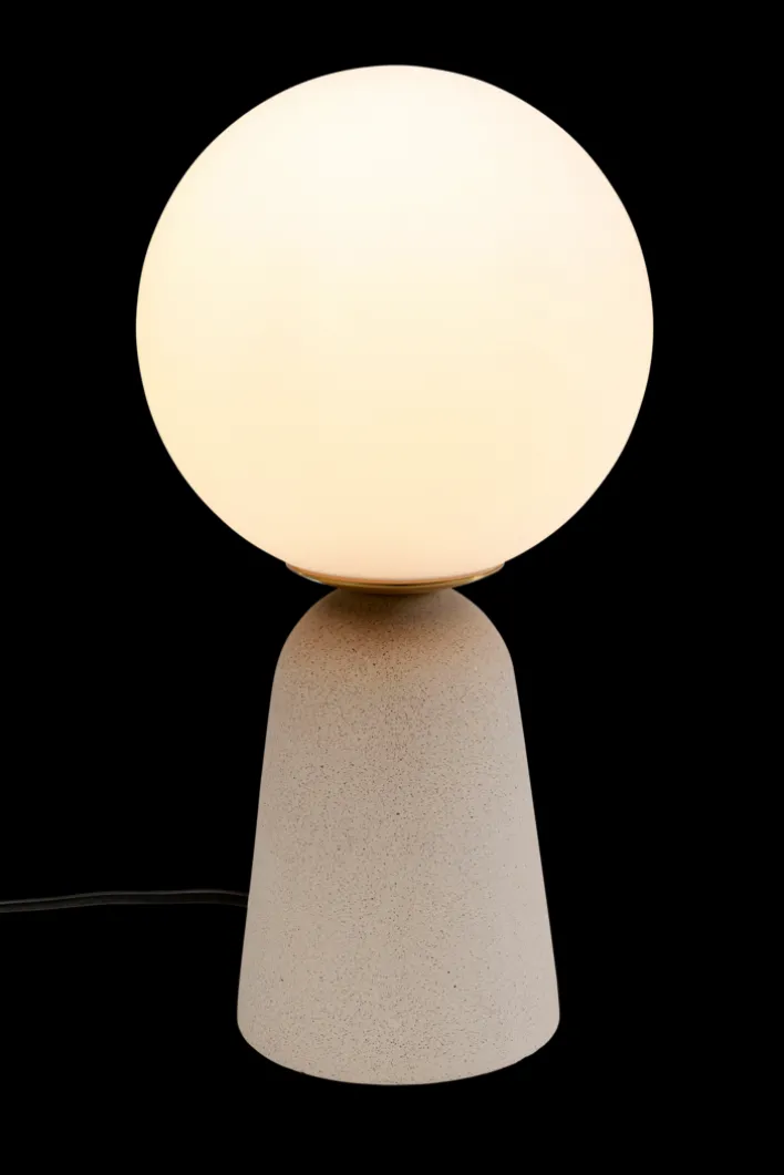Mit einer Höhe von 31 cm und einer Breite von 16 cm ist sie kompakt und vielseitig einsetzbar. Die Leuchte besteht aus einem stabilen Sockel aus Stein und einem kugelförmigen Schirm aus Opalglas, der für eine gleichmäßige Lichtverteilung sorgt. Die Farbe Beige harmoniert mit dem schlichten, eleganten Design und fügt sich nahtlos in verschiedene Einrichtungsstile ein.