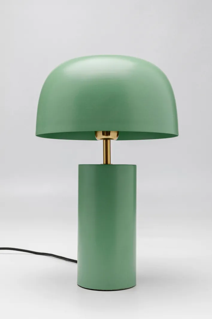 Die Farbe der Leuchte ist ein elegantes Salbeigrün. Der Lampenschirm und der Sockel bestehen aus lackiertem Stahl, was der Leuchte eine robuste und zugleich glamouröse Ausstrahlung verleiht. Die Leuchte ist mit einer E14-Fassung ausgestattet und ermöglicht den Einsatz von wechselbaren Leuchtmitteln bis zu 15 Watt. Ein praktischer Schnurschalter sorgt für eine einfache Bedienung. Die Zuleitung hat eine Länge von 200 cm, was flexible Platzierungsmöglichkeiten bietet.
