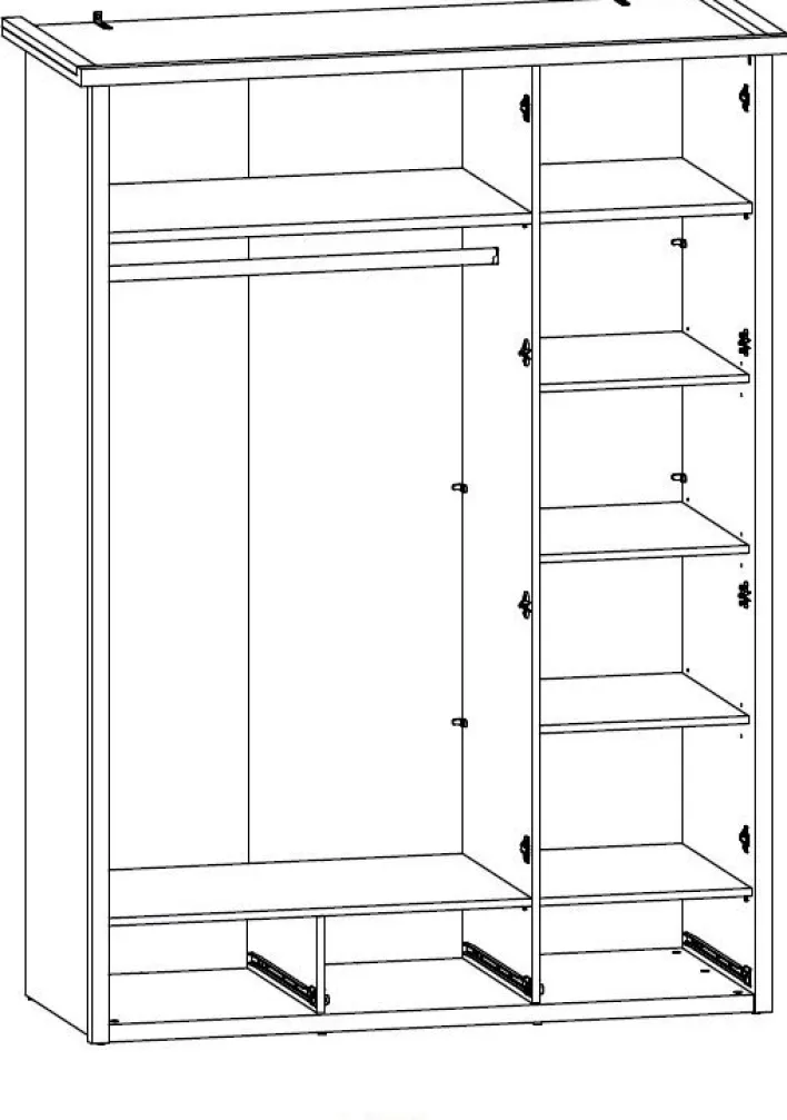 Anzahl Drehtüren inklusive: 3Anzahl Kleiderstangen inklusive: 1 Stk.Anzahl Schubkästen inklusive: 3Anzahl Einlegeböden inklusive: 5