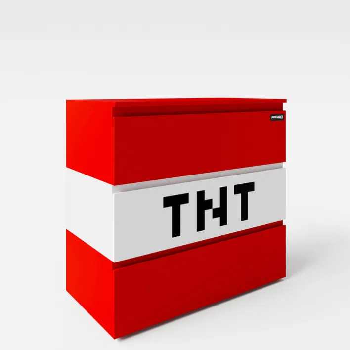 Drei Schubkästen sorgen für großzügigen Stauraum und damit für Ordnung im Kinderzimmer. Das TNT-Design wird zum Blickfang und sorgt dafür, dass die Kinder-Kommode MINECRAFT 80 cm rot/ weiß/ schwarz zum Lieblingsstück wird. Diese Kommode wiegt 37 kg und bietet Sicherheit, da sie nicht verrutscht werden kann. Ihr frisches und kindgerechtes Design sorgt für Freude und reiht sich in jede farbenfrohe und fröhliche Kinderzimmereinrichtung ein.