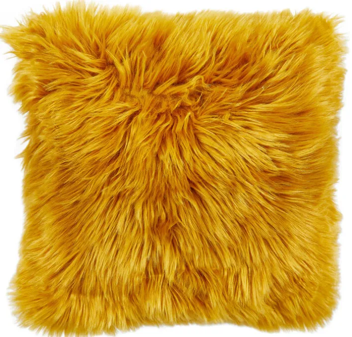 Die Kissenhülle OVIUM hat quadratische Maße von 40 x 40 cm. Gefertigt ist sie aus einem textilen Material aus 80 % Acryl und 20 % Polyester im Farbton Senfgelb.