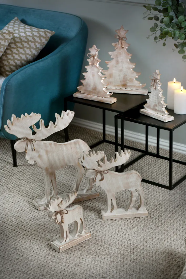 Dieser Weihnachtsbaum aus der Serie MANGO besteht aus massivem Mangoholz und ist für den Innenbereich, insbesondere das Wohnzimmer, geeignet. Mit einer Höhe von 32 cm, einer Breite von 22 cm und einer Tiefe von 6 cm eignet sich das Objekt ideal als dekoratives Element auf Tischen, Sideboards oder Fensterbänken. Die Oberfläche zeigt eine helle, weiß lasierte Farbgebung, die die natürliche Holzmaserung des Mango-Holzes durchscheinen lässt und dem Baum eine dezente, rustikale Optik verleiht.
