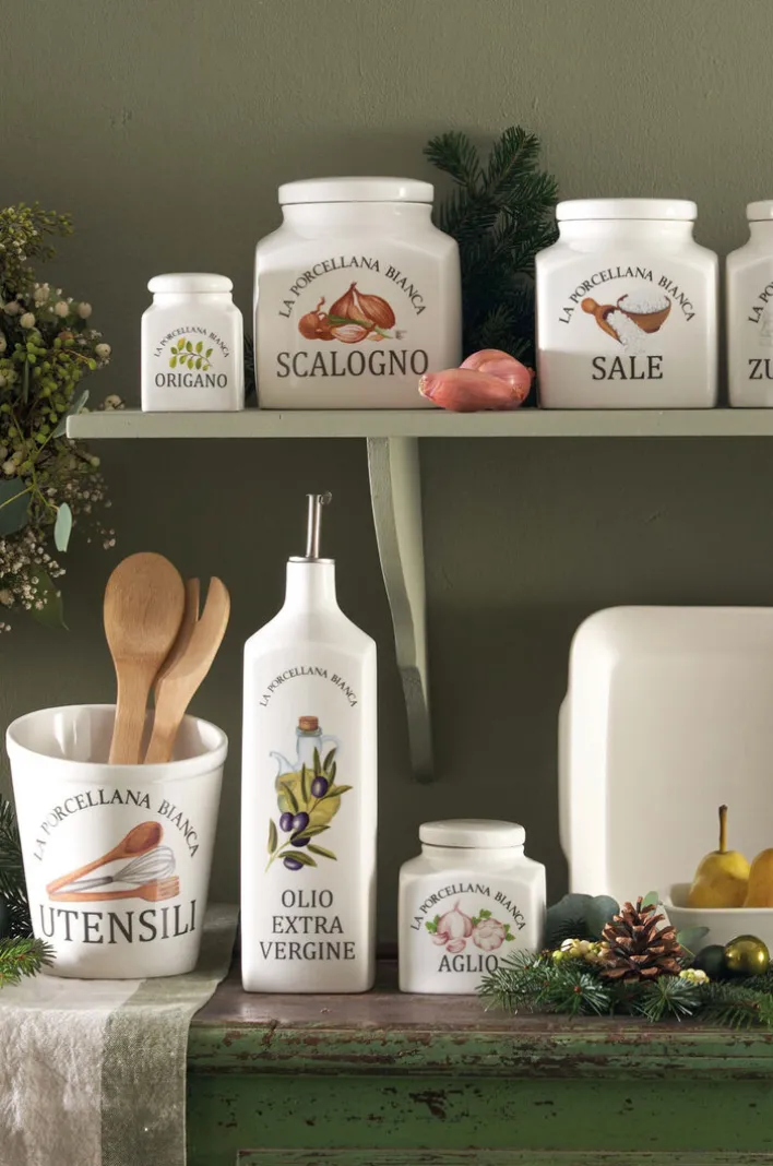 Die LA PORCELLANA BIANCA Vorratsdose CONSERVA aus weißem Porzellan bereichert die Küche um italienisches Design und steht zugleich als praktischer Küchenhelfer bereit.
