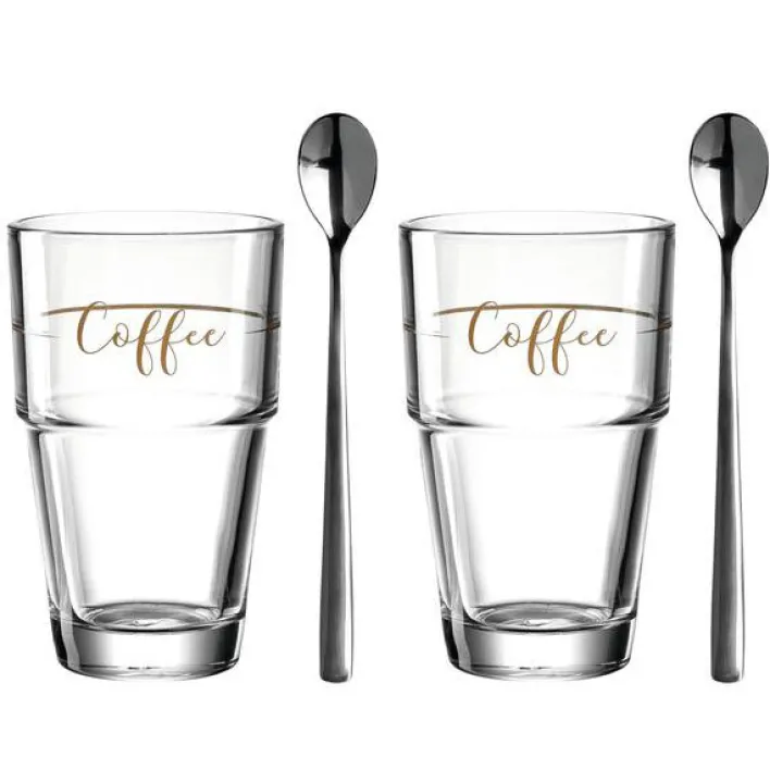 Das 4-teilige Becher-Set SOLO COFFEE von Leonardo hat ein stilvolles Design und eignet sich perfekt für italienische Kaffeespezialitäten. Die Kaffeebecher für feinen Latte macchiato überzeugen mit ihrer klassischen Form und passen auf den schön gedeckten Frühstückstisch. Durch ihren Aufdruck im oberen Drittel des Glases fallen sie sofort ins Auge. Ausgeliefert in einer attraktiv bedruckten Kartonage ist das tolle Becher-Set auch als kleines Geschenk ideal.