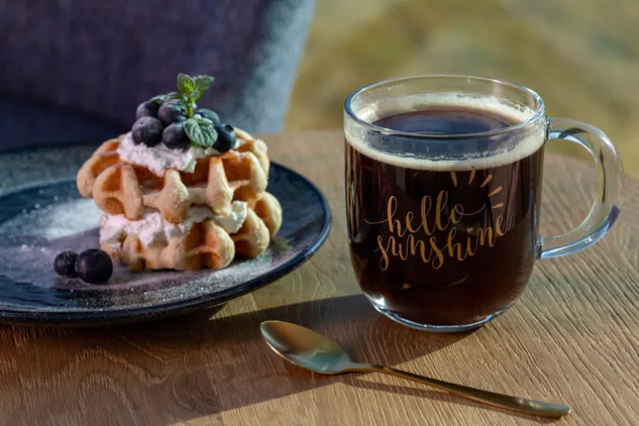 Das hochwertige Kalk-Natron Glas verleiht der Tasse eine edle Optik und macht sie außerdem sehr hitzebeständig, sodass sie wunderbar zum Aufwärmen von Getränken in die Mikrowelle gestellt werden kann. Sie eignet sich hervorragend als Frühstückstasse und bietet sich beispielsweise für eine heiße Tasse Tee oder Kaffee an. Doch natürlich kann sie auch mit ins Büro genommen oder für den Kaffee am Nachmittag genutzt werden.