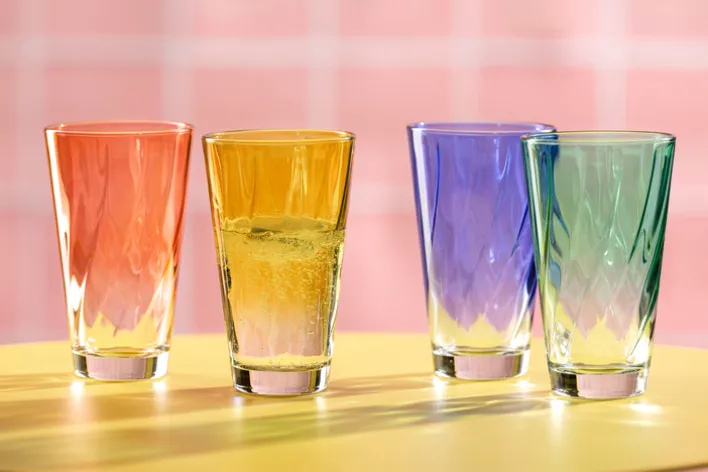 Das dezent schimmernde Rot des Glases wirkt transparent, sodass jederzeit der Füllstand der Gläser erkennbar ist. Die Trinkgläser faszinieren mit einem gedrehten Design. Das Set ist „Made in Europe“. Nach dem Verwenden zu den Mahlzeiten oder zum Snack lassen sich die jeweils 316 Gramm schweren Modelle, die eine konisch verlaufende Form haben, einfach in der Spülmaschine reinigen.