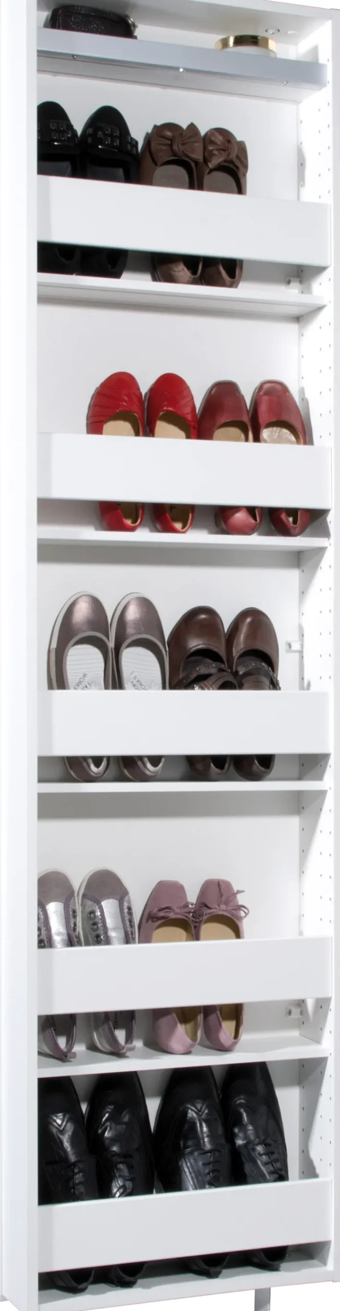 Mit einer Höhe von 195 cm, einer Breite von 50 cm und einer Tiefe von 18 cm bietet er ausreichend Stauraum, ohne viel Platz in Anspruch zu nehmen.