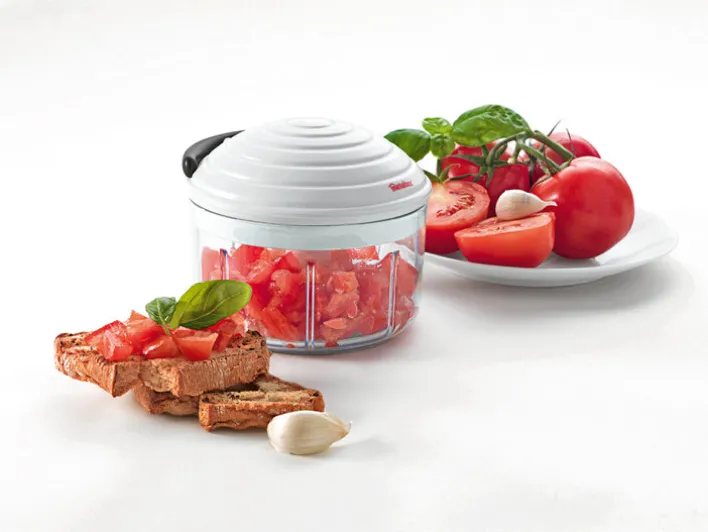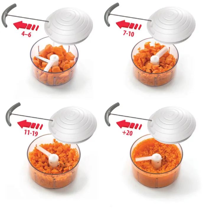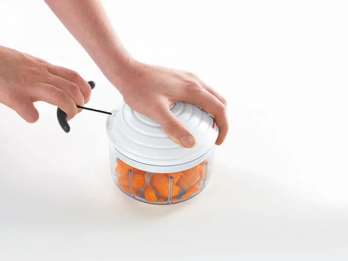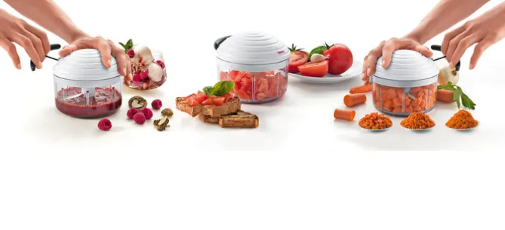 Der vielseitige Zerkleinerer von metaltex ist das ideale Küchengerät zum Mixen, Rühren und Raspeln in vier verschiedenen Schnittgrößen. Ausgestattet mit hochwertigen Klingen aus rostfreiem Edelstahl zerkleinert der ROTO MAC Gemüse, Obst, aber auch Nüsse zum Backen genau auf die gewünschte Größe. Durch den intelligenten Zugmechanismus ist er leicht zu bedienen und liefert immer gleichbleibende Ergebnisse. Auch zum Passieren von Suppen, Pesto, Desserts oder Soßen ist der Zerkleinerer gut geeignet.