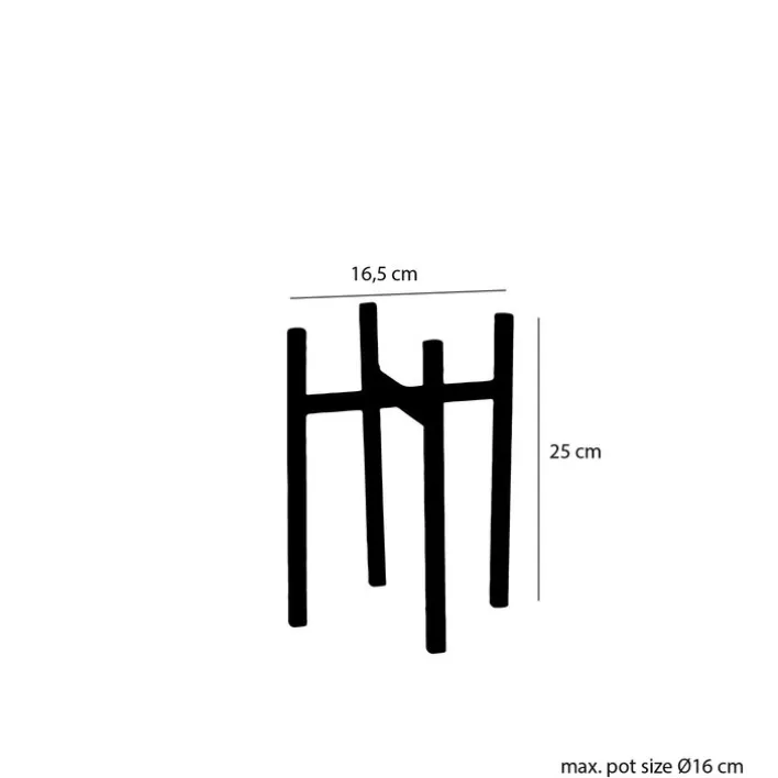 Der schwarze Blumentopfständer ASCOT ist 16 x 16 cm groß und hat eine Höhe von 25 cm. Er besteht aus robustem Metall und eignet sich für Blumentöpfe mit einem maximalen Durchmesser von 16 cm.