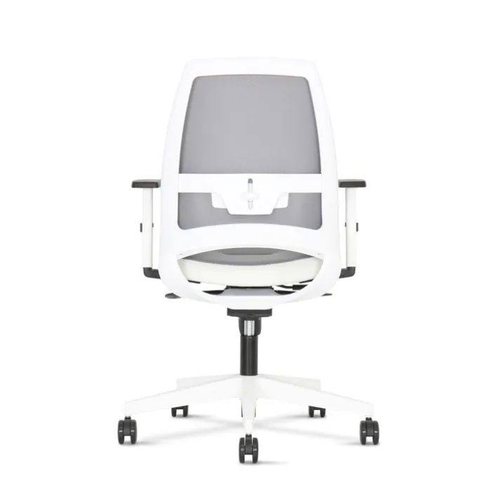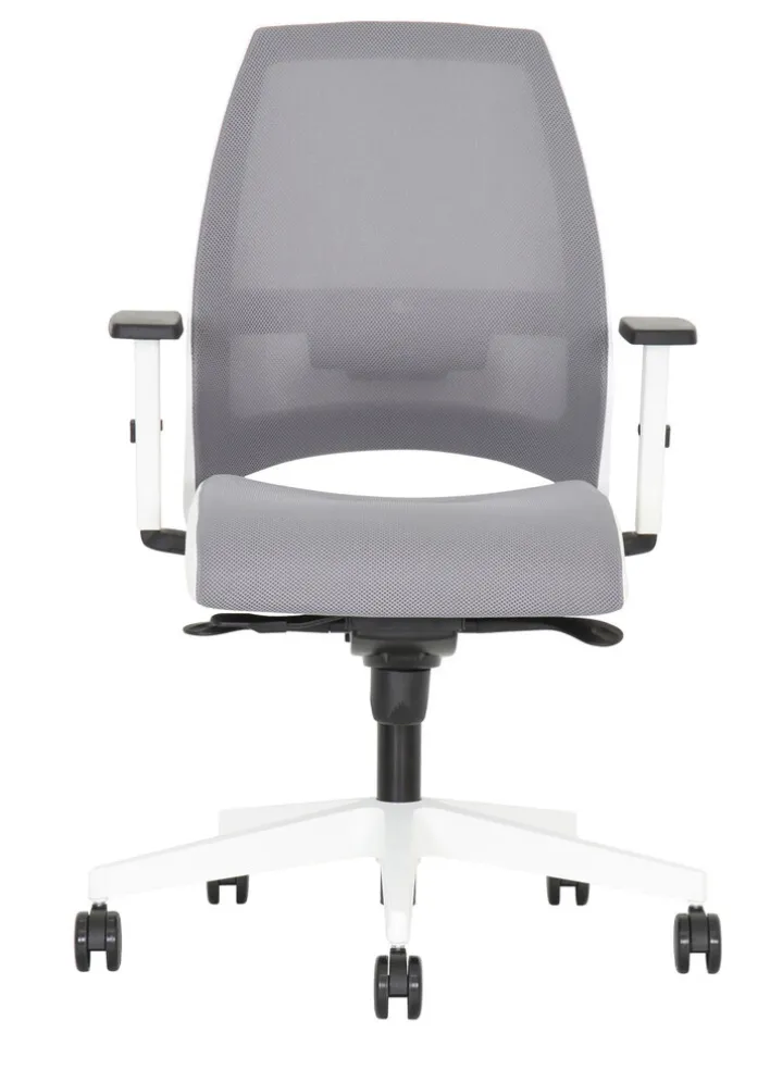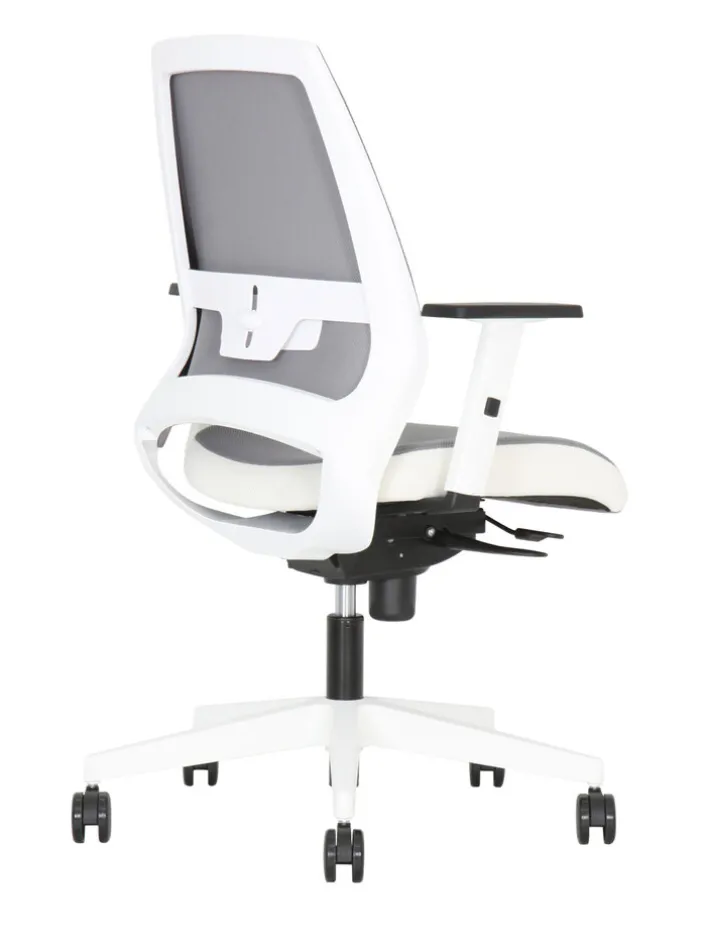 Der NOWY STYL Drehstuhl KENARI in der Farbkombination Weiß/Grau sorgt für Komfort im Homeoffice. Mit einer ergonomisch geformten Rückenlehne, Sitztiefenverstellung und Lumbalstütze ist der Schreibtischsessel auch bei langem Sitzen bequem.