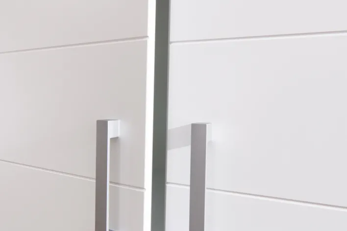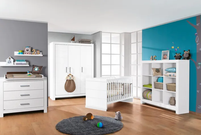 In zeitlosem Design bringt Kleiderschrank FIONA eine helle und freundliche Atmosphäre ins Kinderzimmer. Korpus und Fronten sind aus weißer Holznachbildung gefertigt und überzeugen durch dekorative Zierfugen in den Oberflächen der Türen. Die klaren Formen der matten Griffe ergänzen die kindgerechte Optik.