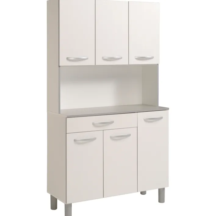 Allen voran ist der SPOON Buffet-Schrank von Parisot ein echtes Platzwunder, das viel Stauraum von unterschiedlicher Größe in einem zeitlosen Design vereint. Eine mittige Arbeitsplatte bietet genügend Fläche für kleine und große Küchenutensilien und -geräte, während der längliche Schieber beispielsweise zur Aufbewahrung des Bestecks dienen könnte.