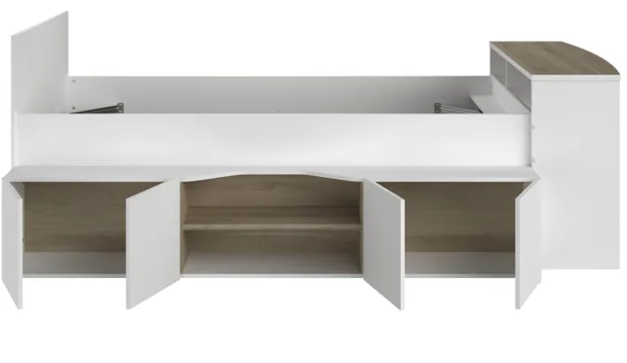 Das Parisot Hochbett CLEO 1 in Weiß ist mehr als nur ein Bett. Dank durchdachtem Design spart es Platz im Kinderzimmer, denn der Schreibtisch ist bereits integriert.
