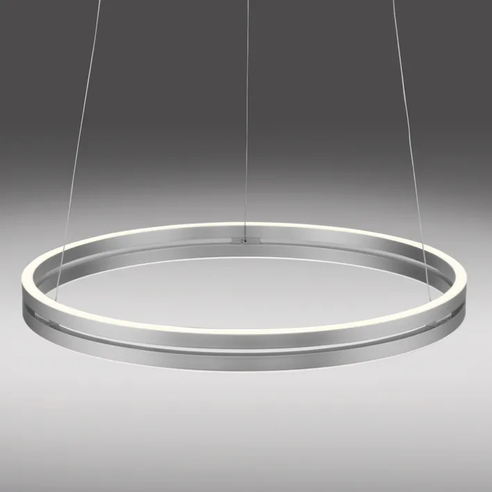 Die Pendellampe PURE-E-LOOP stammt aus der Fertigung des seit über 60 Jahre bestehenden Herstellers Paul Neuhaus aus dem westfälischen Werl, dessen Name für innovative Beleuchtungsentwicklungen steht. Bei diesem Modell kombineriert der Hersteller Qualität und Komfort. Die LED Pendelleuchte ist mit einem E-Lift(R)-Antrieb und Fernbedienung zur bequemen Höhenverstellung ausgestattet. Die 44 Watt starken LEDs sind fest eingebaut. Sie bieten eine einstellbare Farbtemperatur bis maximal 5.000 Kelvin und eine Helligkeit bis zu 4.480 Lumen. Die PURE-E-LOOP LED Pendellampe für die Deckenanbringung verfügt über die Schutzklasse 2 (IP20) und ist deshalb für den Innenbereich geeignet. Dort sorgt sie insbesondere über Ess- und Besprechungstischen für eine stilvolle Beleuchtungslösung für Kunden mit gehobenem Anspruch an Design, Funktionalität und Qualität.