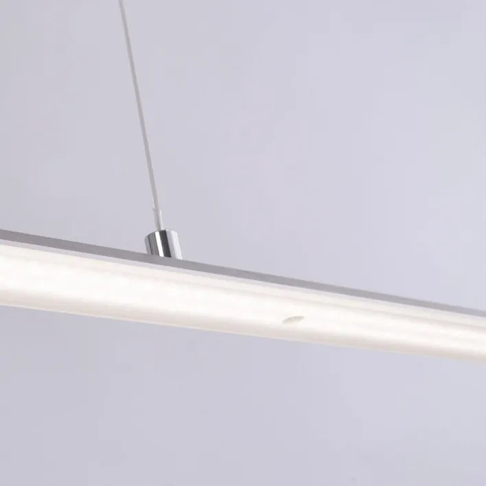 Vor allem in minimalistischen Wohn- und Esszimmern wirkt das LED Balkenpendel PURE-LITE von NEUHAUS besonders elegant. Die Bedienung der Leuchte erfolgt über eine Gestensteuerung mittels zweier Sensoren oberhalb des Lichtbalkens. Die fest verbauten LEDs lassen sich ganz einfach dimmen oder in der Lichtfarbe verstellen. Über die Memory Funktion sind gespeicherte Modi schnell abrufbar. Mit bis zu 3000 Lumen ist für ausreichend Helligkeit in jeder Situation gesorgt.