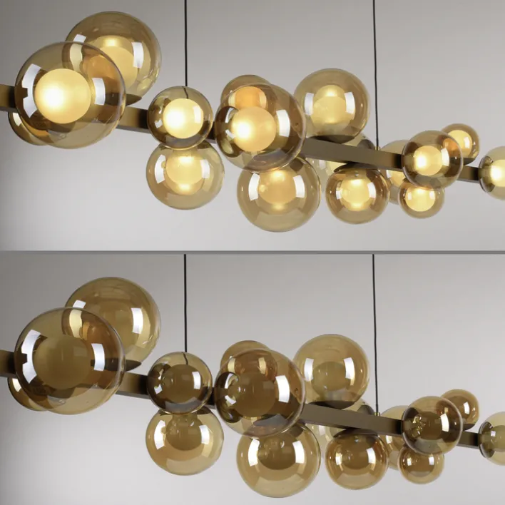 Die LED Pendelleuchte E-POPUP besteht aus 18 Glaskugeln, von denen die größeren amberfarbig getönt und die kleineren satiniert sind. In jeder Kugel befindet sich eine 1,8 Watt starke, fest eingebaute LED. Mit zusammen rund 32 Watt erreichen die LEDs eine Lichtleistung von 3.888 Lumen. Die Helligkeit ist dimmbar und die Farbtemperatur von 2.700 bis 5.000 Kelvin (Warmweiß bis Neutralweiß) justierbar. Eine Memory-Funktion ist vorhanden. Außerdem verfügt die Hängelampe über einen E-Lift(R)-Antrieb, der eine Einstellung der Höhe zwischen 45 und 240 cm erlaubt.