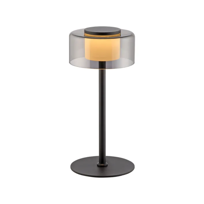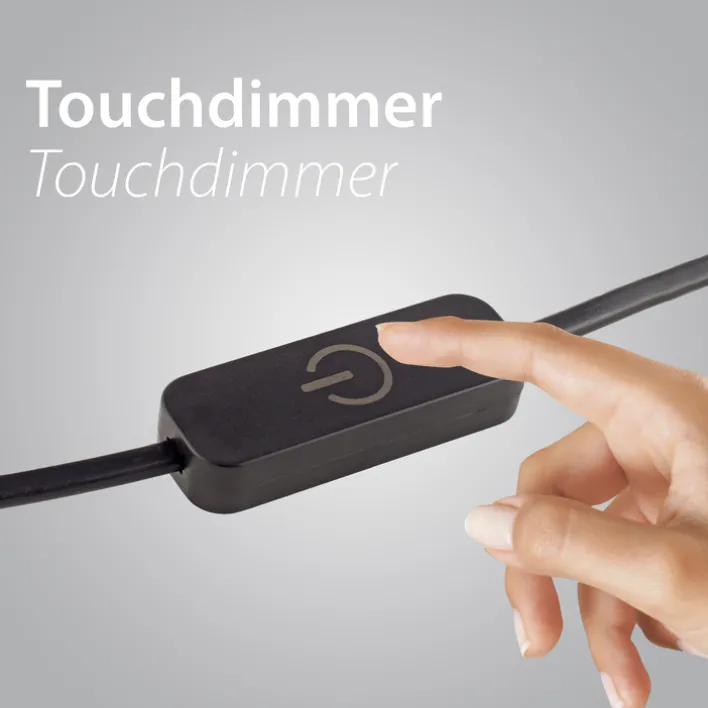 Mit dem Modell RIKA 15 cm präsentiert die Marke Paul Neuhaus eine schwarze LED-Tischleuchte, die mit ihrem schlichten Lampenschirm aus Rauchglas gefällt. Nutzer dimmen das Licht mit einem Touchdimmer, eine Memory-Funktion erleichtert die Handhabung.