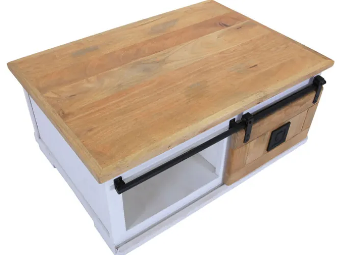 Couchtisch LEWIS ist 95 x 65 x 45 cm groß und definitiv ein starker Blickfang! Sein Korpus aus massivem Mangoholz (sägerau weiß lackiert) punktet mit einem extrem stilvollen und edlen Design.